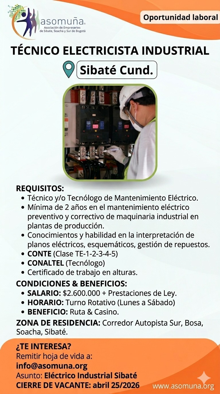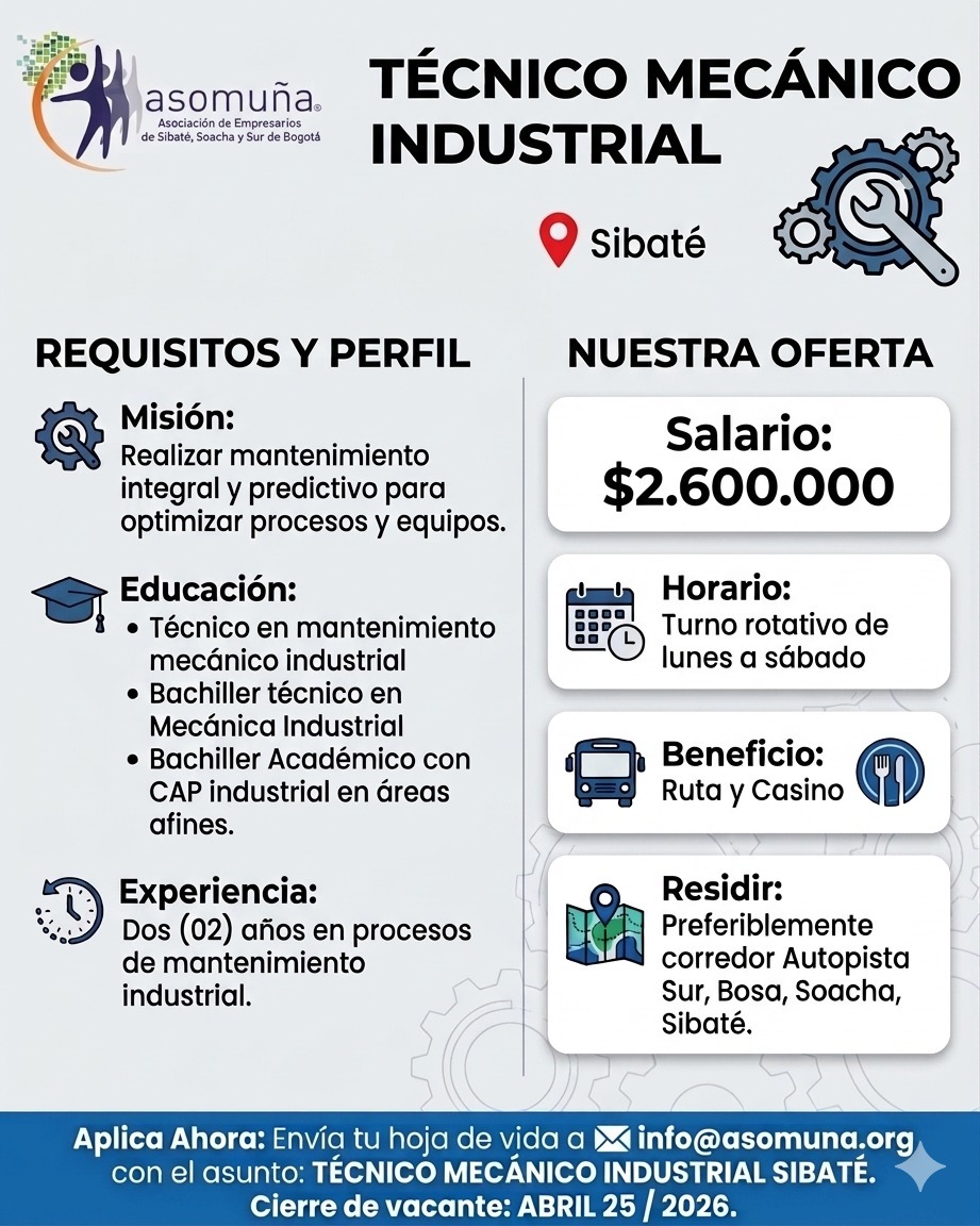 Oportunidad Laboral - Tecinco Mecánico Industrial - Sibaté